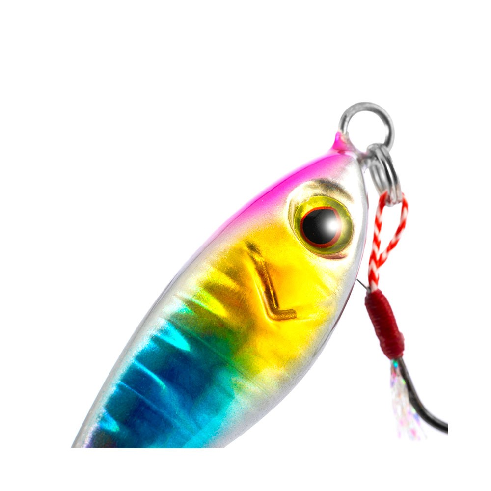 Το φωσφορούχο (luminous) επίχρισμα διατηρεί λάμψη στο σκοτάδι, αυξάνοντας τις πιθανότητες επίθεσης σε χαμηλό φωτισμό ή μεγαλύτερα βάθη. Κατά την πτώση, το jig κατεβαίνει με το κεφάλι προς τα κάτω, προσομοιώνοντας τη φυσική κίνηση μικρόψαρου που τρέφεται.