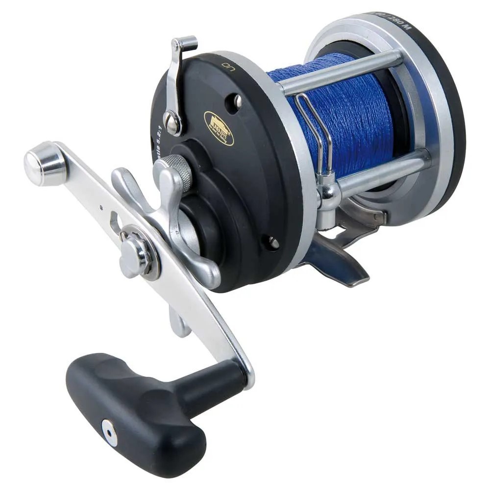 Κλασσικός μηχανισμός συρτής μεγέθους 500, με κατανεμητή, φρένα star drag(αστέρι), γεμισμένος με νήμα, κατάλληλος για συρτές τόσο αφρού όσο και βυθού(φύλακας, ζόκα, κοντοφύλακας, σιλικόνες κ.α.).