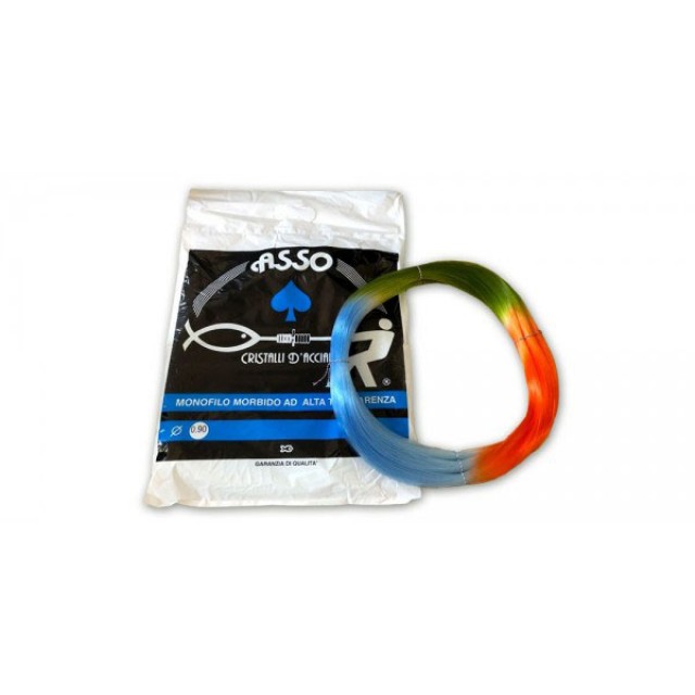 Το ASSO SPADES “cristalli d’acciaio” (ευφημισμός του κρυστάλλινη και ατσαλένια) είναι ένα μονόινο νάιλον κορυφαίας ποιότητας, σε μοναδικό τρίχρωμο χρωματισμό, ιδανικό για παραγάδι και επαγγελματικό ψάρεμα.