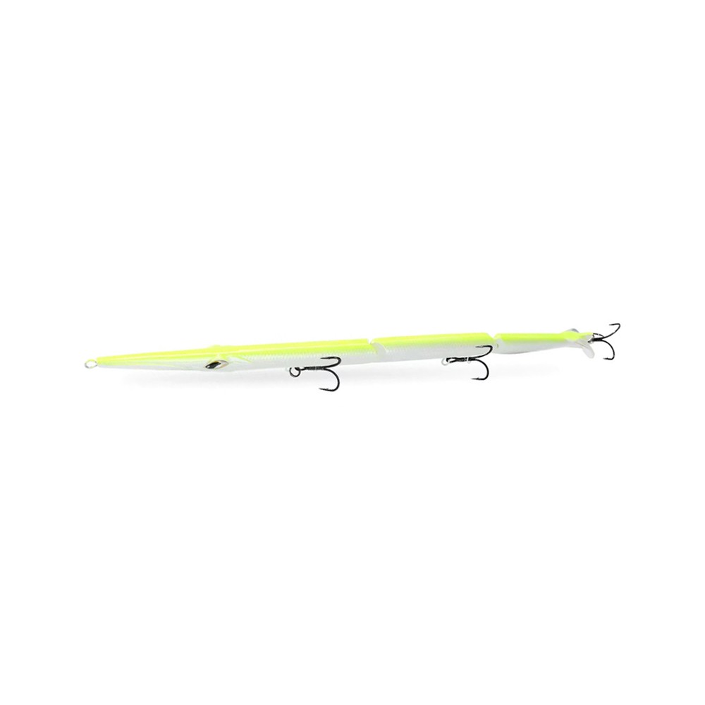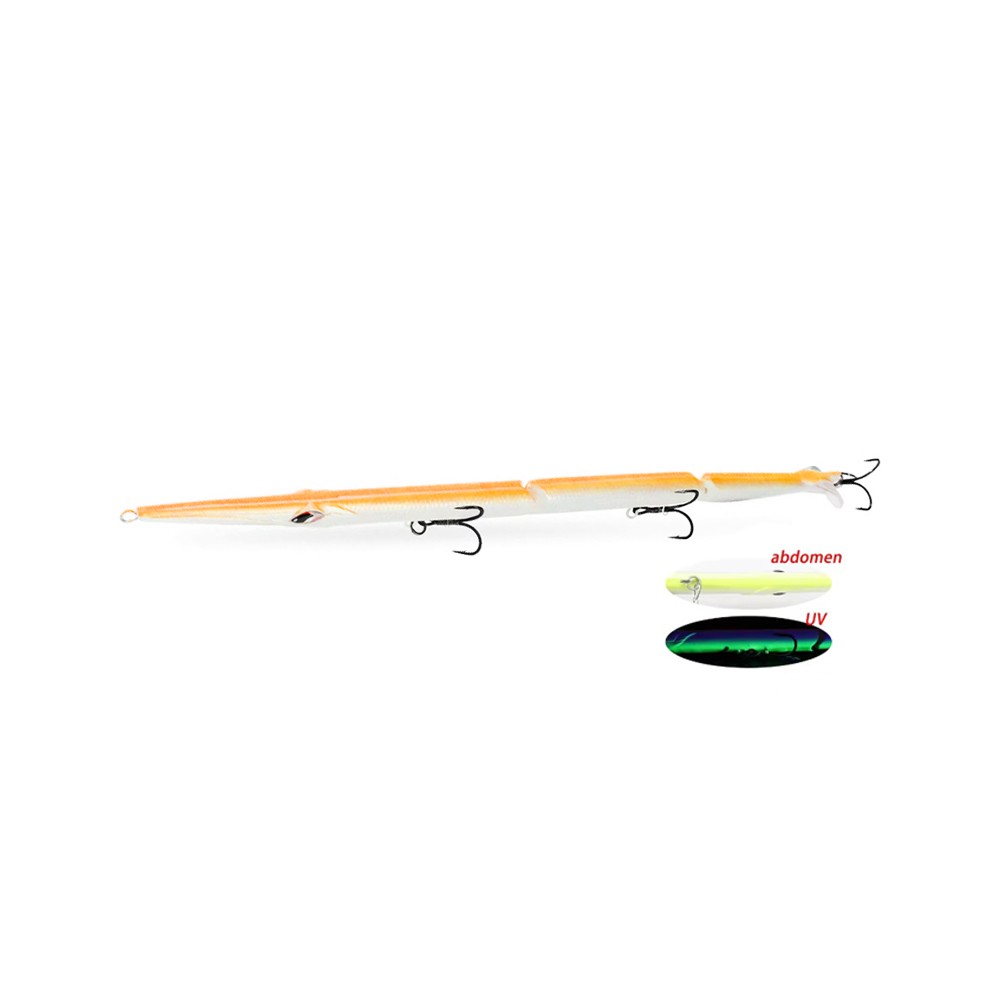 Βυθιζόμενο τεχνητό δόλωμα αρθρωτής κατασκευής τριών τμημάτων, σχεδιασμένο για απόλυτα ρεαλιστική προσομοίωση ζαργάνας, με έντονη S-κίνηση και φυσική πλευρική ταλάντωση ακόμη και σε πολύ χαμηλές ταχύτητες ανάκτησης.