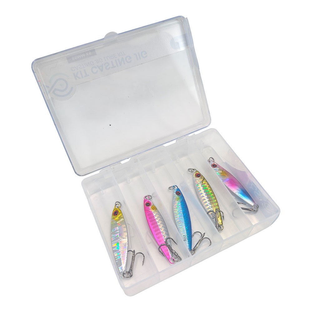 Το Sert SRT Casting Jig Kit είναι ένα ολοκληρωμένο σετ έτοιμο για ψάρεμα (ready-to-fish), σχεδιασμένο για να στοχεύει στα γνωστά μας ψάρια που αναζητούμε τόσο από την ακτογραμμή όσο και από σκάφος. Πρόκειται για μια προσεκτικά επιλεγμένη συλλογή από μεταλλικά τεχνητά (casting jigs) που προσφέρει άμεση λύση στον ψαρά.