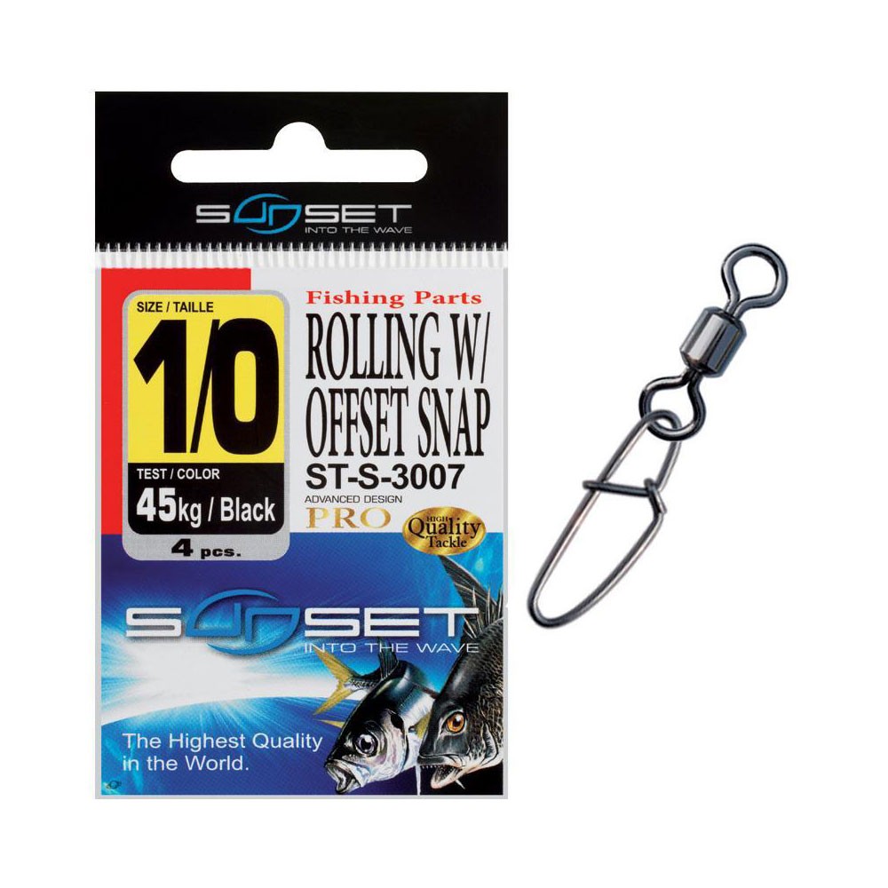 Αυτές οι παραμάνες με ενσωματωμένο στριφτάρι Sunset Rolling w/ Offset Snap είναι σχεδιασμένες για να προσφέρουν μέγιστη αντοχή και αξιοπιστία σε κάθε είδους ψάρεμα. Η κατασκευή «rolling» (βαρελάκι) του στριφταριού ελαχιστοποιεί το στρίψιμο της πετονιάς ή του νήματος, ενώ η παραμάνα (snap) επιτρέπει τη γρήγορη και ασφαλή αλλαγή τεχνητών δολωμάτων, μολυβιών ή αρματωσιών.